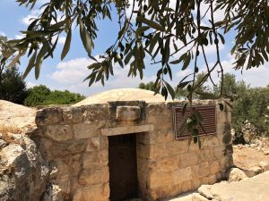 The vivid testimonies of these historic episodes can still be seen today. Aboud is a village of 2,500 inhabitants that, like it or not, feels as though it is stuck in time. Walking the small streets of the old city, you will notice some vine- and tree-covered ruins and old stone houses that bring to mind the centuries of village traditions. This is the feeling at the Orthodox Church of the Dormition of Virgin Mary, known also as “al-Aboudiya” (from Aboud), built in 332. This is perhaps the best place to meet Sa’ed, known properly as Abu Bassam, who would rarely miss a Sunday mass, showing the nostalgic elegance of the hatta w ergal on his head, the traditional Palestinian scarf made famous worldwide by the late Yasser Arafat.