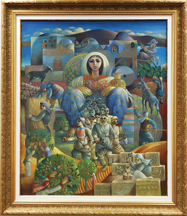 This development is characterized by a transformation in the manner of production – from simple repetitive acts of artisans who produced works in order to meet the requirements of the market (whether for local consumption or for tourists and visitors) to complex, individual acts that reflect an artist’s tradition and personality, and that result in a unique piece of art that represents an experience or state that has affected the artist during the period of its creation. The early pioneer artists in Palestinian art who are represented in Along the Path are Nicola Tadros, Jiries Jawharieh, Nicola Saig, and Khalil Halaby. They began their careers as iconographers but also painted non-religious subjects. The art of this period was influenced essentially by the techniques used in iconography.