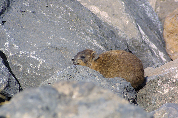 The hyrax or coney (wabar in Arabic) is an interesting brownish animal about the size of a rabbit that can be seen on the precarious edges of steep cliffs of valleys throughout Palestine, feeding on plants and furtively rushing back to its den when threats such as a predatory eagle or a jackal are sighted – a peculiar danger call can be heard from the animals that hold guard on lookouts. It belongs to a unique order of mammals and is in fact closer to tapirs and elephants than to rabbits and rodents. Humans occasionally hunt these for food, so the hyrax has become very shy around humans, but it can be observed in places such as Mar Saba and the Jordan Valley or on the hillsides of Jenin.