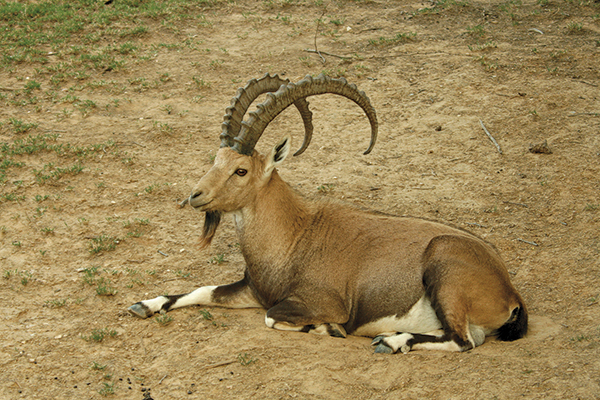 One of the most remarkable large mammals still found in large numbers is the ibex (badan in Arabic), a mountain goat that flourishes around the springs near the Dead Sea and is an amazing climber. The males have large curved horns, and during mating season the sound of these horns hitting each other reverberates in the hills of the Jordan Valley (al-Ghor). The ibex is still hunted by wolves and leopards around the Dead Sea, but it is protected in places like Ein Gedi (named for another Arabic and Aramaic term for goat) on the western side and Wadi Mujib on the eastern side of the Dead Sea.
