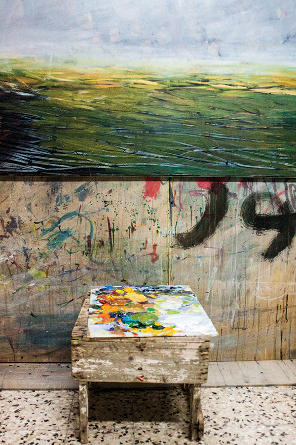 “The la ndscape and my relation to it is the main concept I’ve worked with since I started painting. When I was a child, I played with mud. I moved to the garden, discovering colors and textures. When my [first solo] exhibition opened, the feeling was different because, at that moment, political issues entered my work. I started to feel as though I were part of the landscape, the settlements, and the wall, and I connected with the relationship of Palestinians to their environment.”