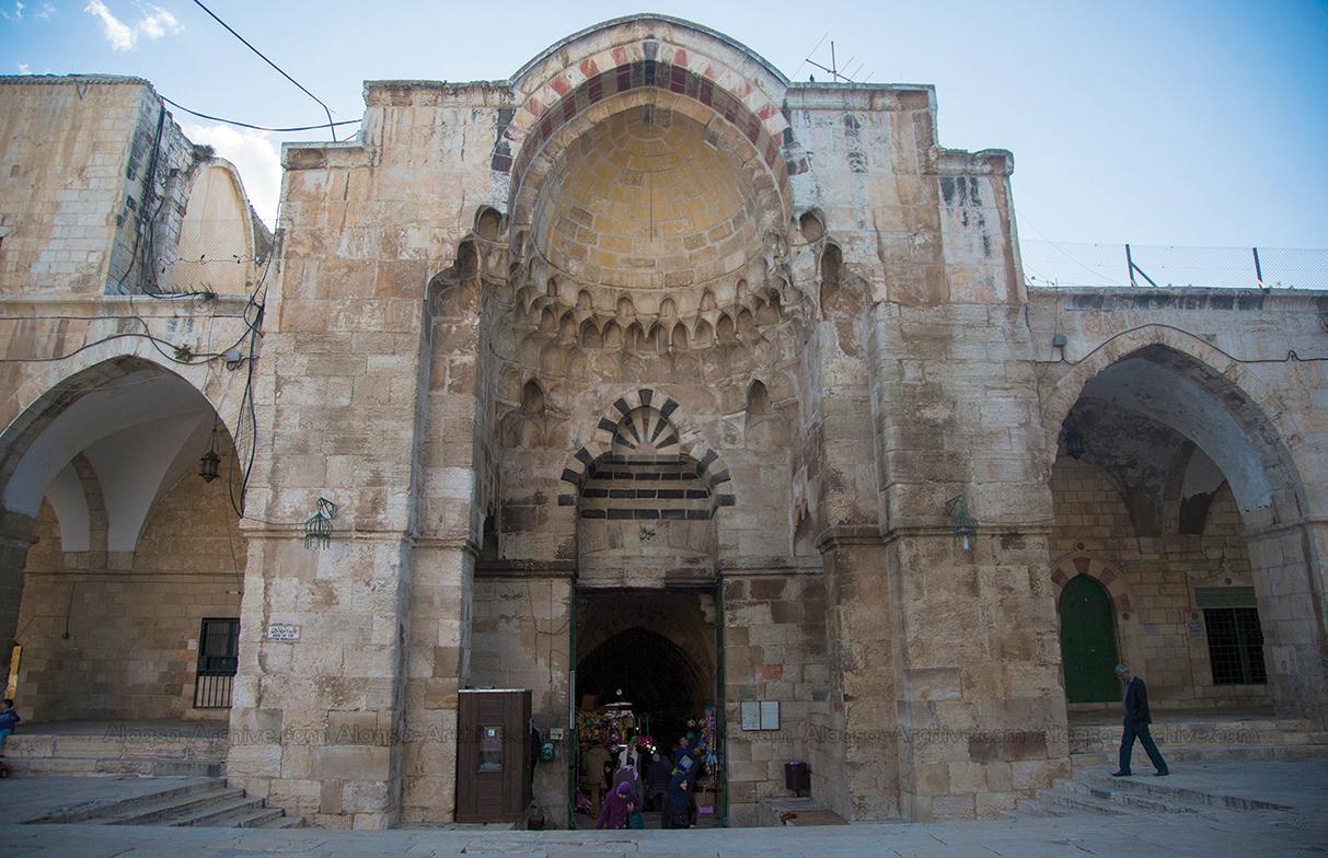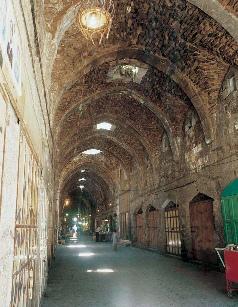 Hammam Al-‘Ayn and Hammam AlShifa are also owned by the Islamic Waqf, but rented to Al Quds University. They are located in Souq Al-Qattaneen, a large commercial center that comprises a long, covered market street with shops on either side, monumental entrances at each end (one of them leading to the Haram Al-Sharif), living quarters above the shops, two public bath houses known as Hammam Al-Shifa (the Bath of Healing) and Hammam Al-‘Ayn (the Bath of Spring), and a khan or caravanserai (traditional resting place for travellers).