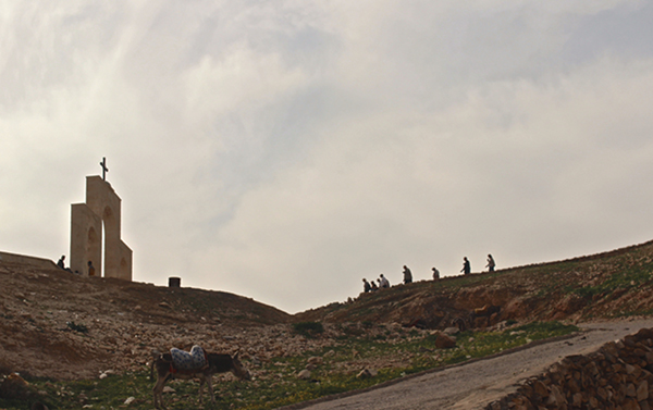 In January, the Birzeit-based Rozana Association invited me to hike in Wadi Qelt, a valley located between the holy city of Jerusalem and the oldest city in the world, Jericho. I was feeling a growing sense of curiosity, so I agreed without hesitation. I was extremely excited about the idea of hiking, but I didn’t expect to have an adventure that would change my attitude towards the tourism potential of Palestine. I took the familiar road to Jericho, but this time turned off from the highway following the sign reading Wadi Qelt in Arabic, English, and Hebrew. We kept driving for another fifteen minutes until we started seeing tourists and Palestinian vendors in the distance. A cross was peaking from the tip of a hill, and a few donkeys were carelessly grazing the dry plants. The gate stood on its own like a portal that vowed to send us back into the past, to an era where miracles were a possibility.