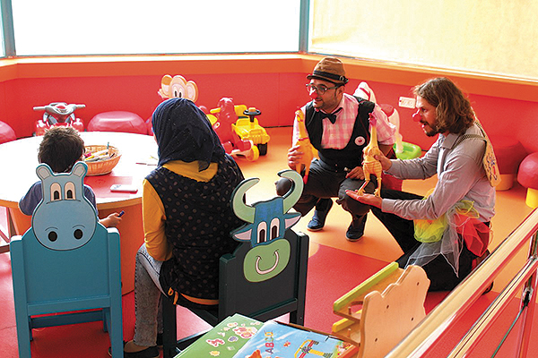 The Huda Al Masri Pediatric Cancer Ward is one of our regular stops. A little girl named Ghazal had been there for a while. We had visited her many times, but it had always been difficult to get her to join in our fun. On one particular visit, we made it our mission to make her laugh. Dr. Mosquito, my clown partner, and I entered her room and tried to make contact with her, but she didn’t even look at us. We started to work only with each other, ignoring her as if she weren’t in the room. Dr. Mosquito took my glasses and I acted as though I couldn’t see anything. I lost my balance, and Dr. Mosquito had to guide me to keep me from bumping into things. Eventually, Ghazal started to look at us; we had found something to catch her attention. When Ghazal sat up with interest, I took away Dr. Mosquito’s glasses and now we were both stumbling around the room, the blind leading the blind. At this point, Ghazal was laughing out loud. She then took the glasses from both of us and the game began. In the end, Ghazal and her mother were laughing so hard that they were crying. We had completed our mission. From now on, Ghazal looked forward to our visits, always running down the hall to greet us when we entered the ward.