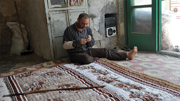 In an ancient shop in the old city of Nablus, he hugs the duvet with care and determination. His needle goes in straight rows, threading along the duvet cover to the fluffy wool that fills it. The needle obeys his rules: be smooth, soft, committed, and loving.